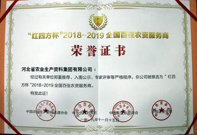 本網(wǎng)訊 近日,由中華合作時報社、中國農(nóng)業(yè)生產(chǎn)資料流通協(xié)會、中國東盟農(nóng)資商會、中國農(nóng)資傳媒主辦的“紅四方杯”2018-2019全國百佳農(nóng)資服務商評選活動結果揭曉,按照公開、公平、公正的原則,經(jīng)各程序嚴格評審、公示,集團公司成功當選為“‘紅四方杯’2018-2019全國百佳農(nóng)資服務商”。