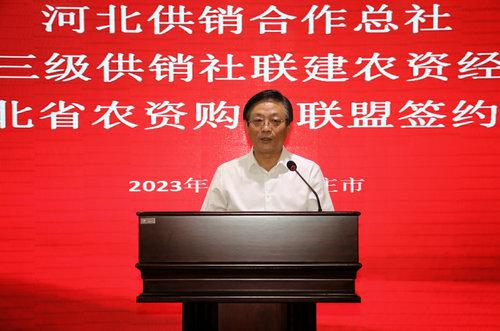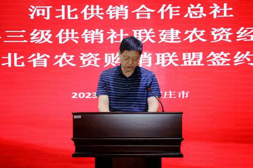 此次河北省三級(jí)供銷社聯(lián)合建設(shè)農(nóng)資經(jīng)營(yíng)體系簽約儀式,是深入貫徹落實(shí)黨中央關(guān)于“完善農(nóng)資保供穩(wěn)價(jià)應(yīng)對(duì)機(jī)制”、保障糧食安全、創(chuàng)新農(nóng)業(yè)生產(chǎn)服務(wù)方式、深入推進(jìn)供銷社綜合改革、健全完善農(nóng)資服務(wù)網(wǎng)絡(luò)、有效提升農(nóng)資經(jīng)營(yíng)服務(wù)能力、拓展終端市場(chǎng)的重大舉措。河北省農(nóng)資集團(tuán)全面貫徹黨的二十大精神,深入學(xué)習(xí)貫徹習(xí)近平總書(shū)記重要講話和重要指示精神,牢記“國(guó)之大者”,繼承發(fā)揚(yáng)“背簍精神”“扁擔(dān)精神”,堅(jiān)守服務(wù)“三農(nóng)”初心,主動(dòng)擔(dān)當(dāng)作為,做優(yōu)做強(qiáng)主業(yè),充分發(fā)揮農(nóng)資流通主渠道作用,為農(nóng)民提供優(yōu)質(zhì)、優(yōu)價(jià)、綠色農(nóng)資商品,為糧食生產(chǎn)安全,建設(shè)農(nóng)業(yè)強(qiáng)省貢獻(xiàn)供銷力量。