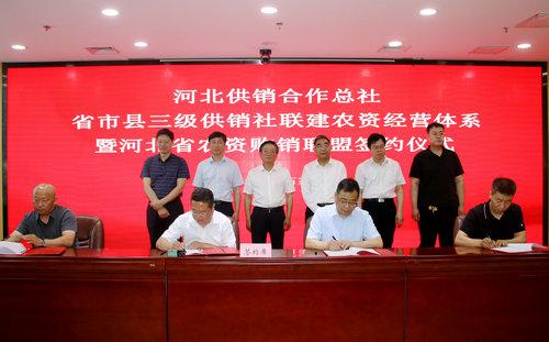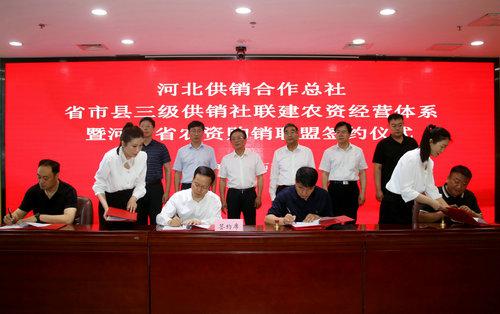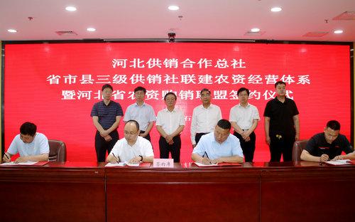 石家莊、邢臺(tái)、邯鄲及辛集四市三級(jí)供銷社聯(lián)建農(nóng)資經(jīng)營(yíng)體系暨河北省農(nóng)資購(gòu)銷聯(lián)盟簽約儀式在石家莊市舉行