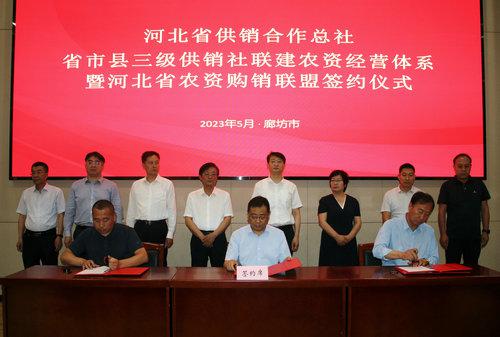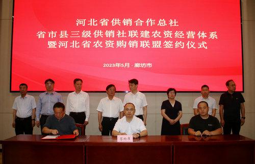 廊坊、唐山、保定、秦皇島、張家口、承德、定州七市三級供銷社聯(lián)建農(nóng)資經(jīng)營體系暨河北省農(nóng)資購銷聯(lián)盟簽約儀式在廊坊市舉行