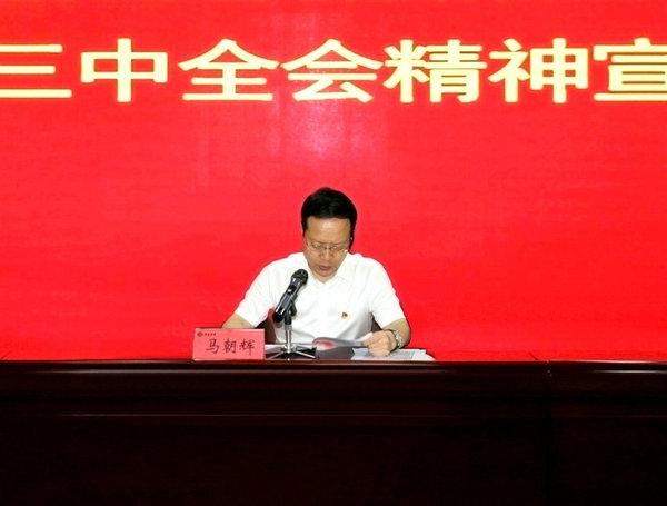 馬朝輝圍繞學(xué)習(xí)貫徹全會精神,從深刻認(rèn)識全會的重大意義,深入學(xué)習(xí)領(lǐng)會習(xí)近平總書記在黨的二十屆三中全會上的重要講話精神,全面準(zhǔn)確理解全會《決定》提出的進一步全面深化改革重大舉措,全力以赴抓好全會精神貫徹落實等四個方面進行全面宣講,并對《決定》中重要內(nèi)容作解讀。